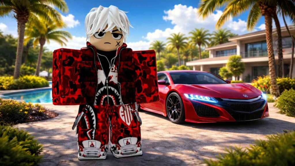This avatar is special because the combination of red and black colors has always been very trending in Roblox. Like this Drip Avatar. This avatar looks very stylish and attractive. Apart from this, it gives a Try Hard and Confident vibe. Besides, it is available in very few Robux. And despite being a low Robux, it gives a very premium feel. Because of this, this avatar looks very amazing in every game. Apart from this, its white hair, headphones and red camo vest, all these together make it even more special.